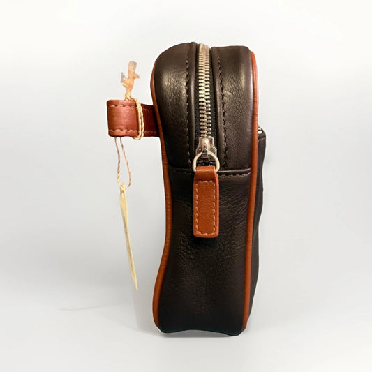 PORTACHIAVI DOPPIO ARTIGIANALE VERA PELLE MARRONE