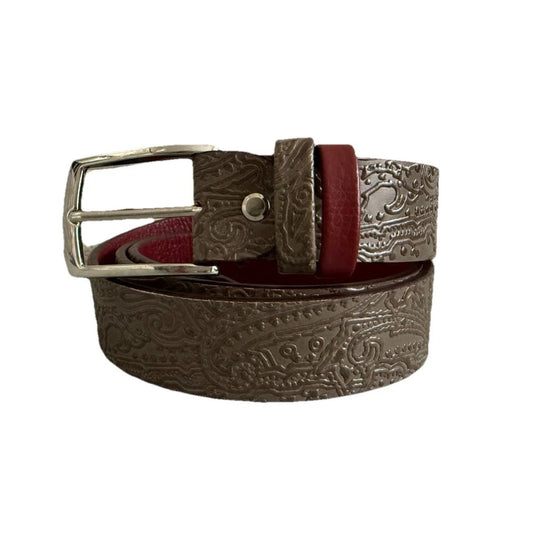 CINTURA ARTIGIANALE VERA PELLE REVERSIBILE GRIGIO/ROSSO