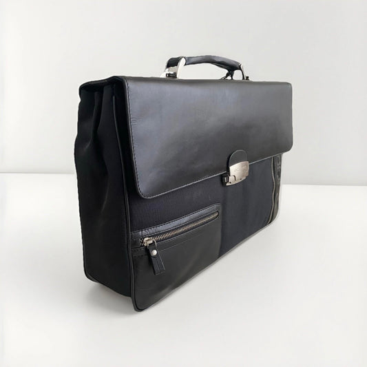 ACCIAIO CARTELLA ARTIGIANALE PELLE E TESSUTO NERA