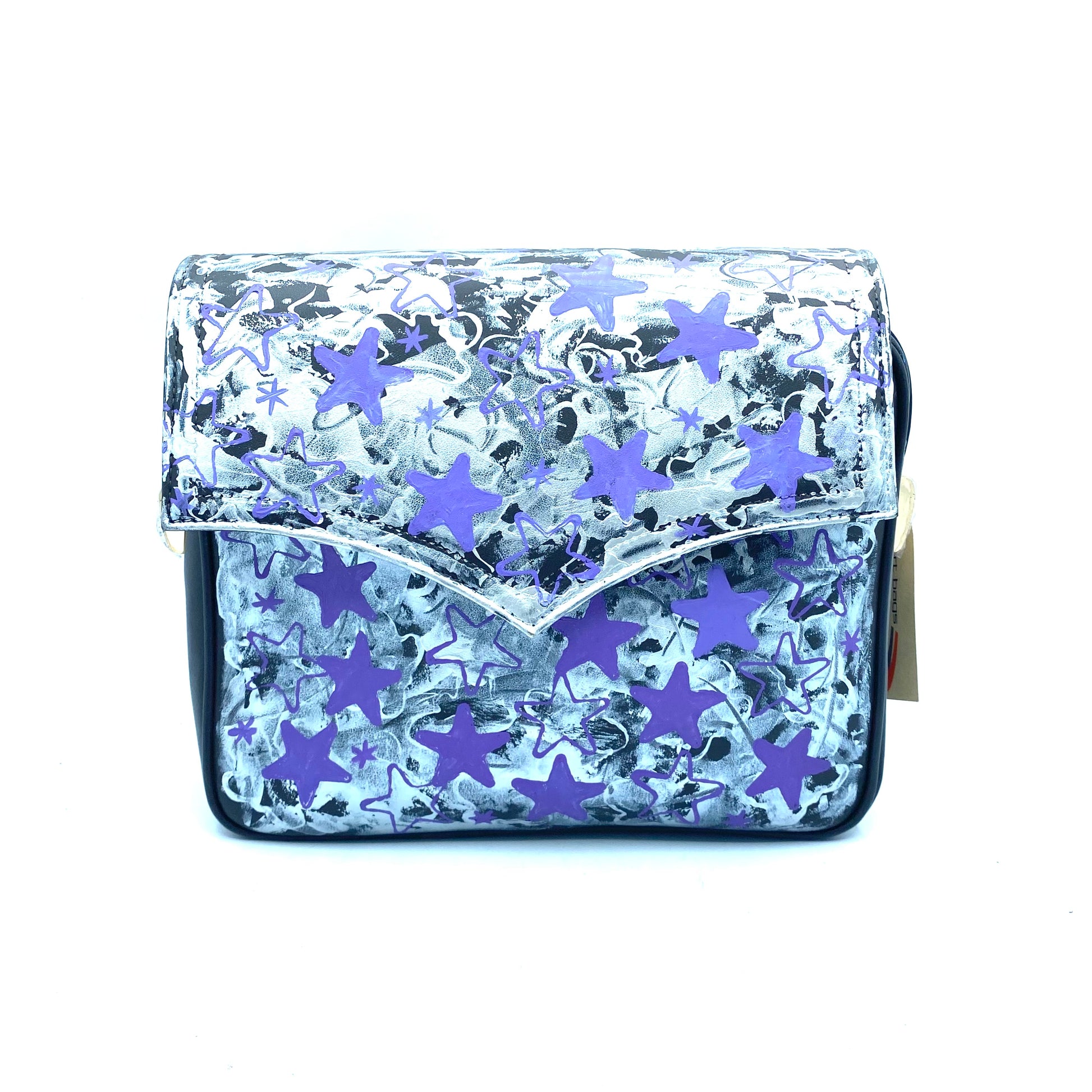 Borsa tracolla postina artigianale dipinta a mano con tracolla regolabile, chiusa con bottone magnetico e cerniera