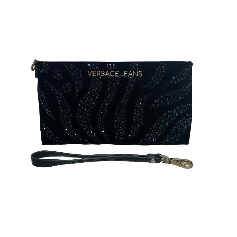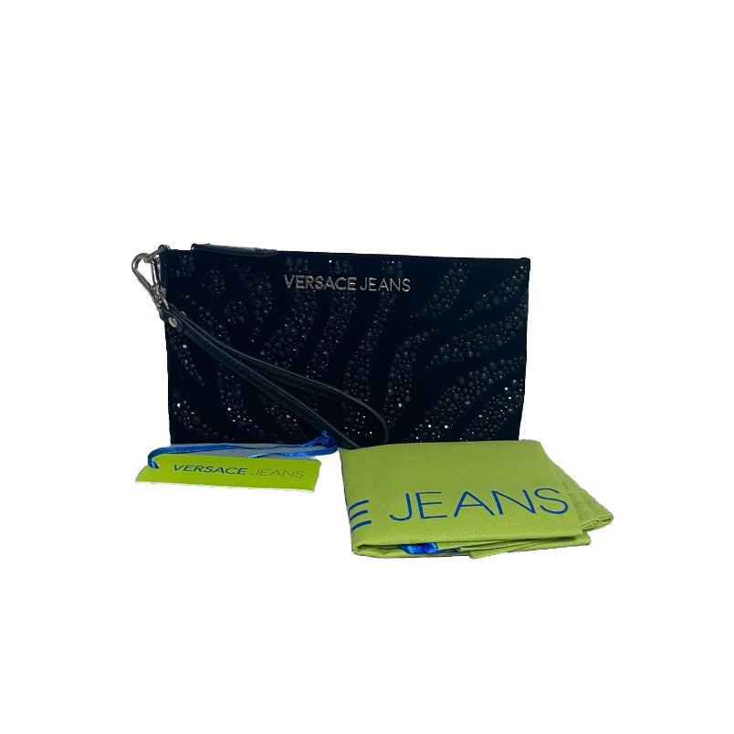 Versace jeans pochette in velluto con logo Versace jeans sul davanti e chiusura con zip