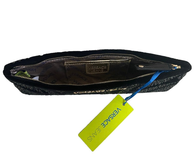 Versace jeans pochette in velluto con logo Versace jeans sul davanti e chiusura con zip