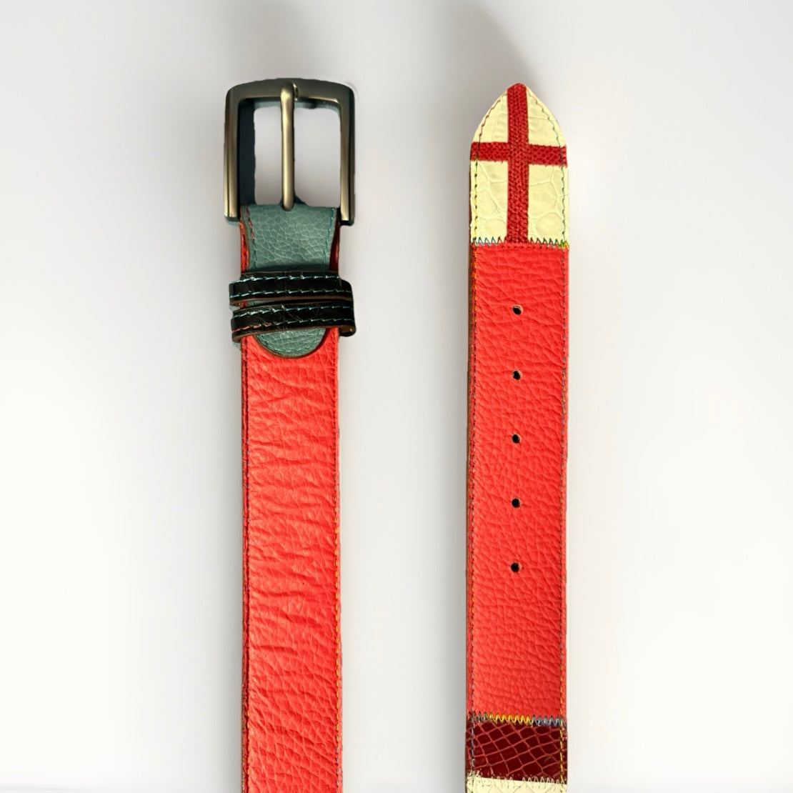 CINTURA PATCHWORK UNISEX BANDIERE DEL MONDO IN PELLE E VERO COCCODRILLO
