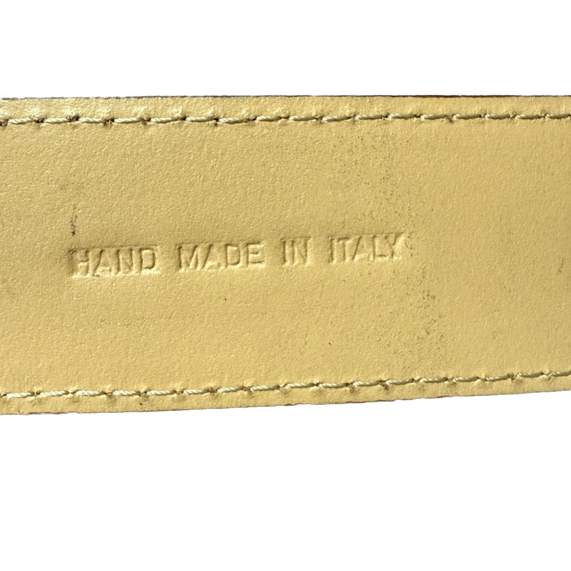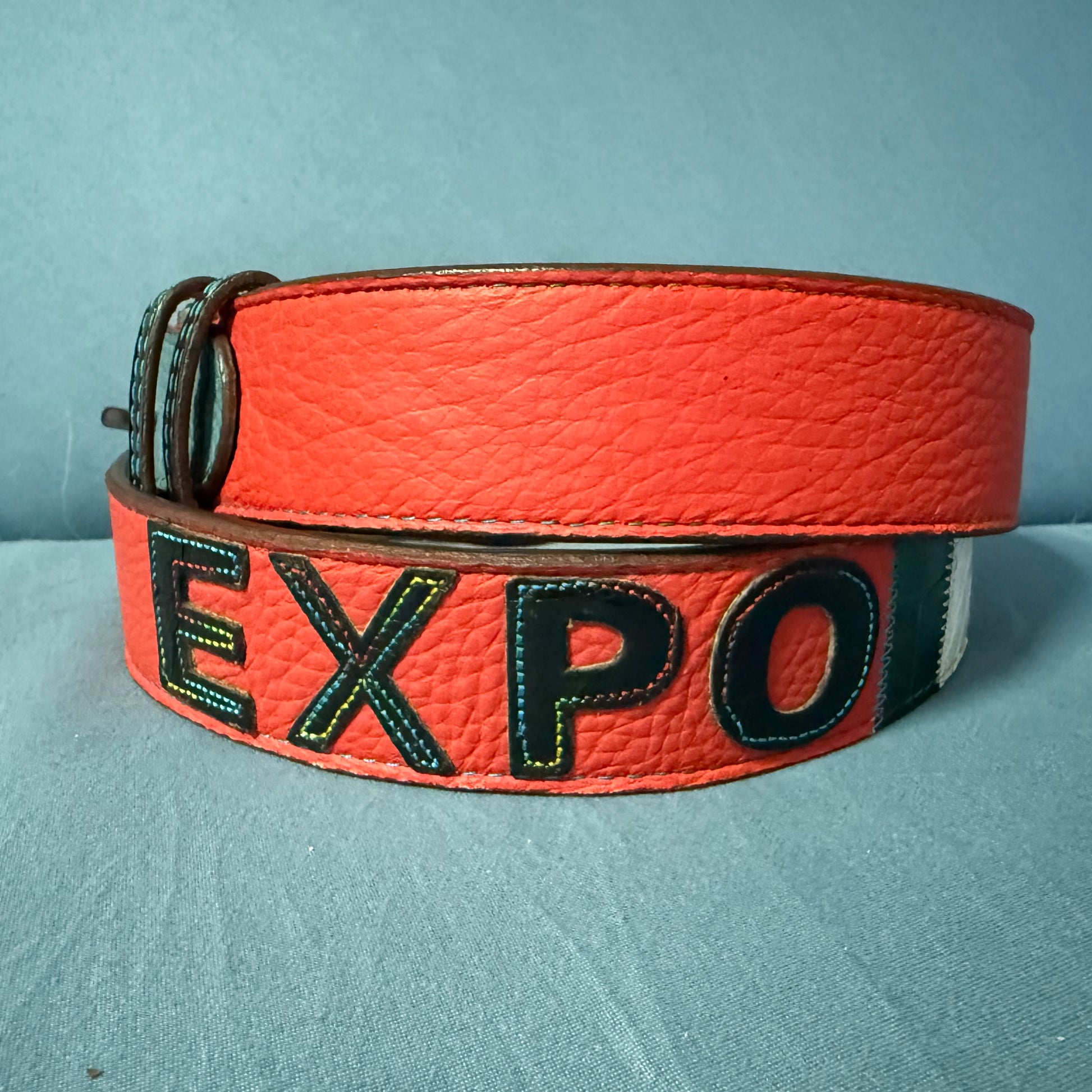 La scritta "EXPO" è visibile in verticale lungo la lunghezza della cintura, con caratteri cuciti in vera pelle di coccodrillo di colore nero