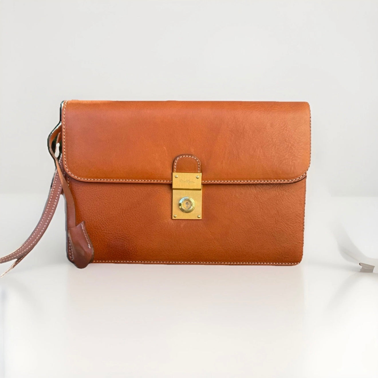 DELL'GA CARTELLA PICCOLA DA LAVORO ARTIGIANALE PELLE MARRONE