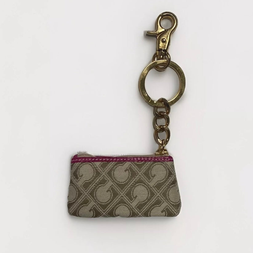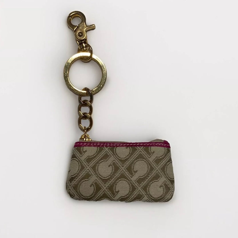 Portachiavi portamonete charm con anello e moschettone in metallo dorato per chiavi e bustina portamonete chiusa con cerniera