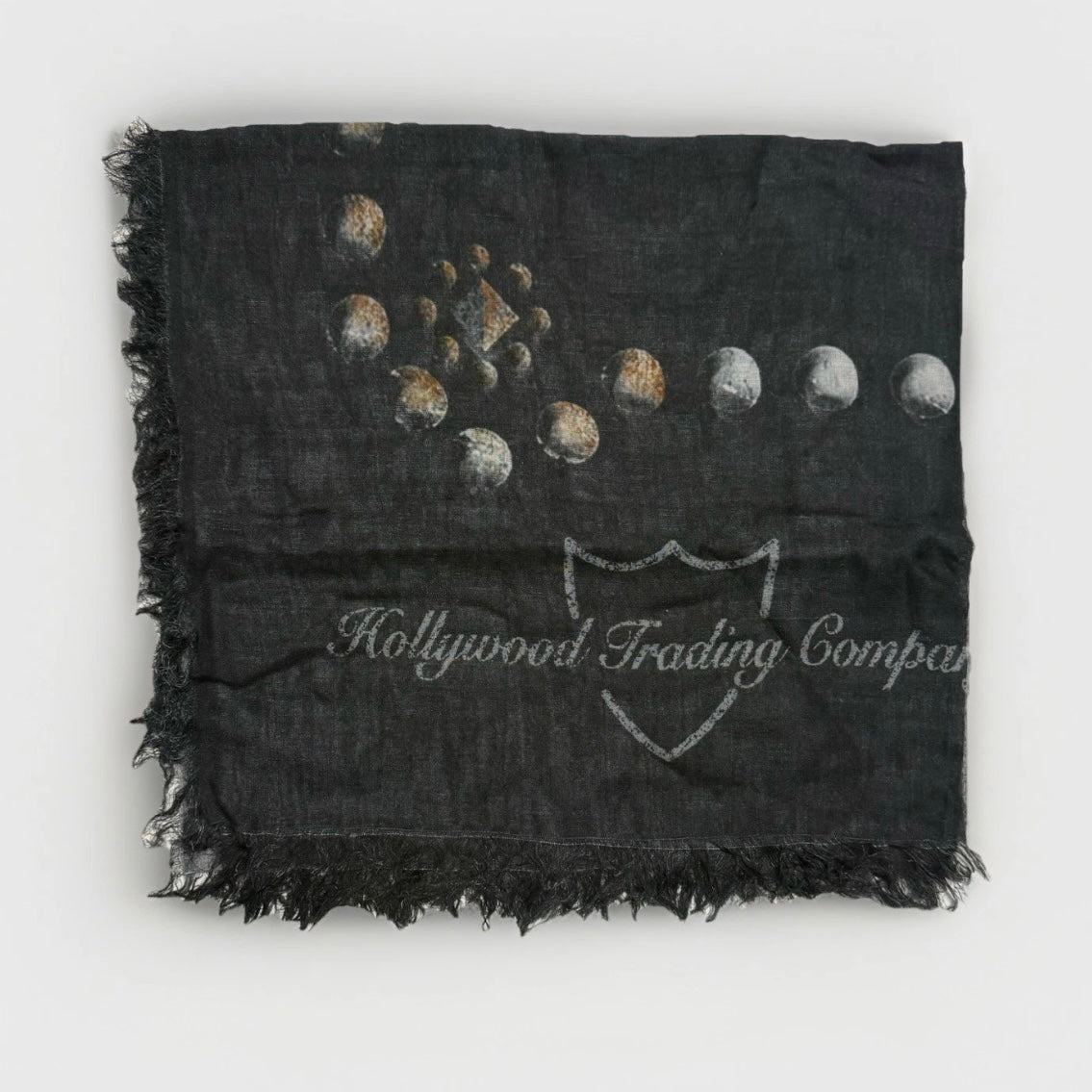 Sciarpa unisex nera con con design borchie che formano la scritta "PRIDE AND GLORY" e il nome del marchio "Hollywood Trading Company".
