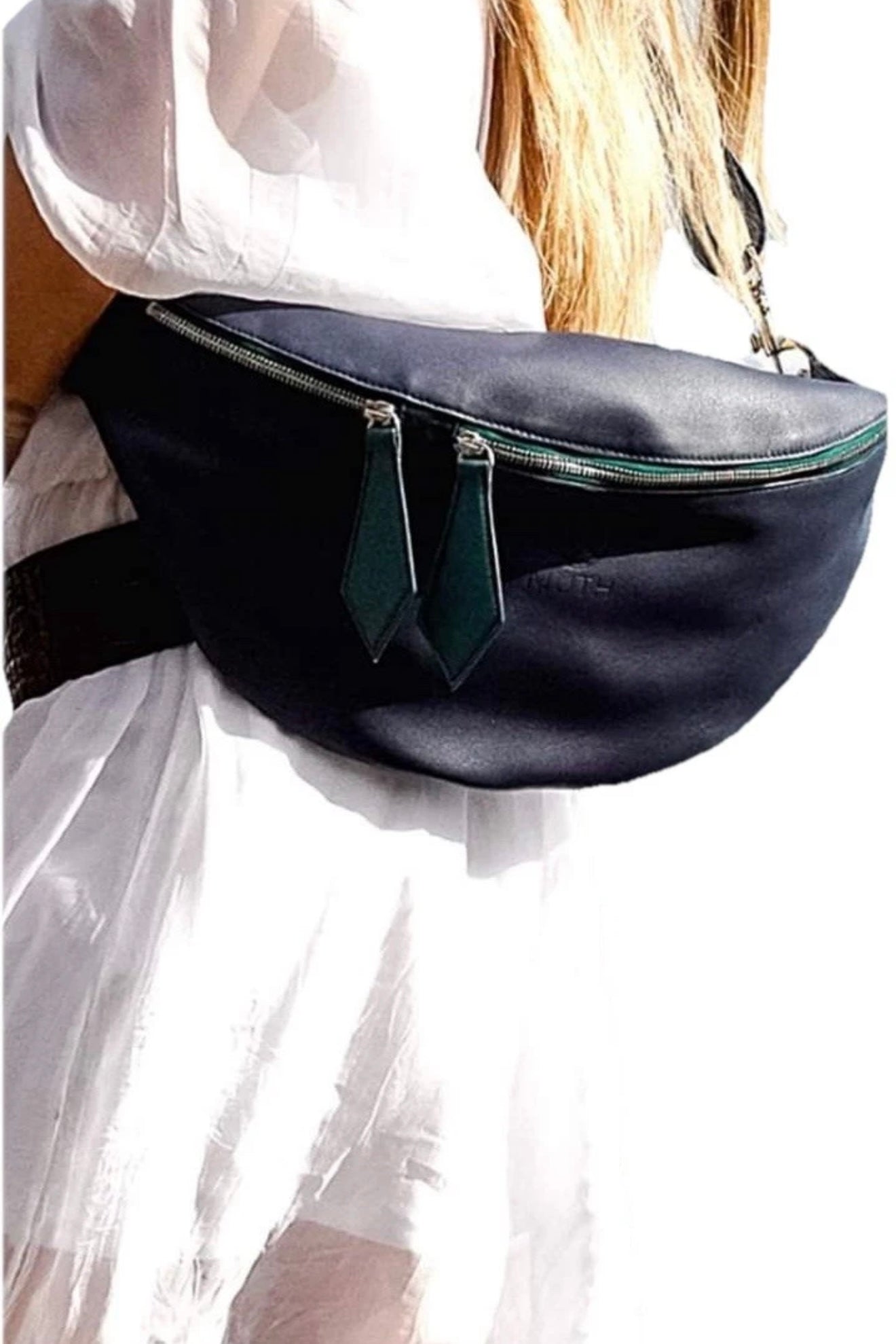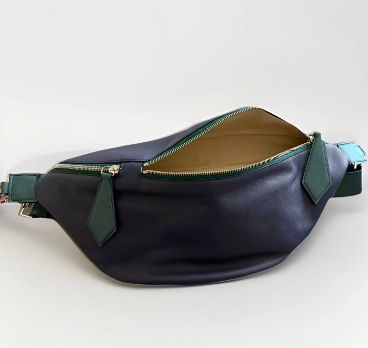 La tracolla è regolabile, le zip sono oversize e resistenti con dettagli lucidi a contrasto per valorizzare la vera pelle italiana di qualità che abbiamo recuperato col metodo AlterLife® per un lusso sostenibile.