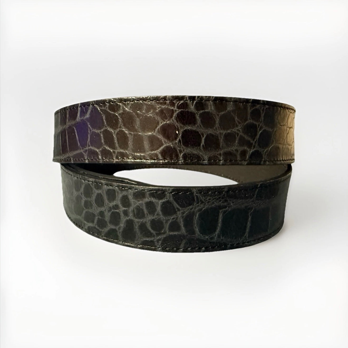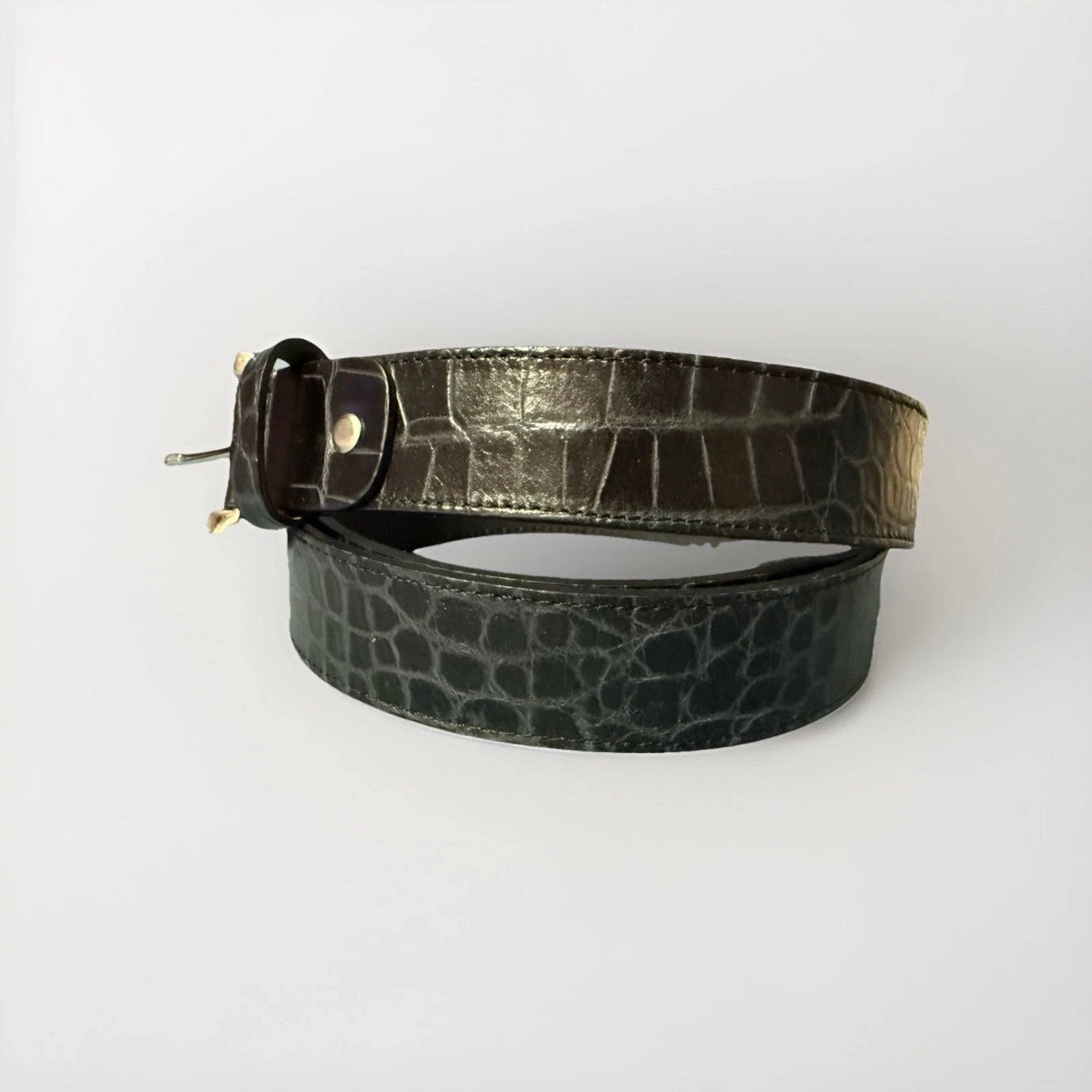 Cintura Nannini da uomo nera in vera pelle stampa cocco con fibbia in metallo con logo.