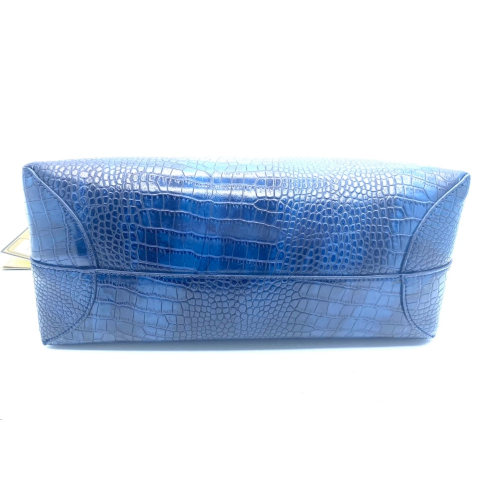 Borsa linea BE MAGIC realizzata in goffrato reversibile da una parte di colore blu sfumato stampa pitone, dall'altra colore argento con tracolla regolabile da portare a spalla o tracolla