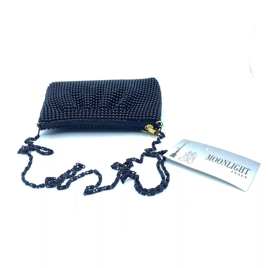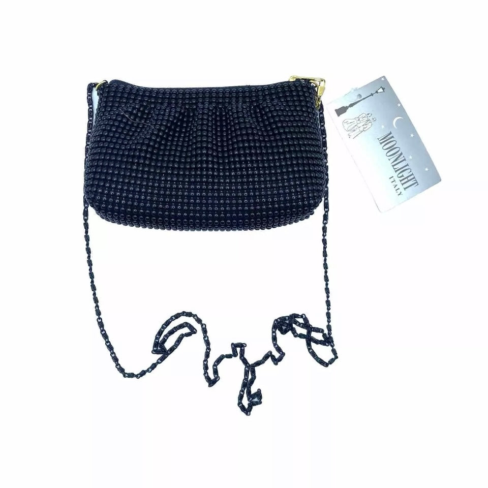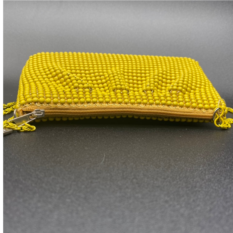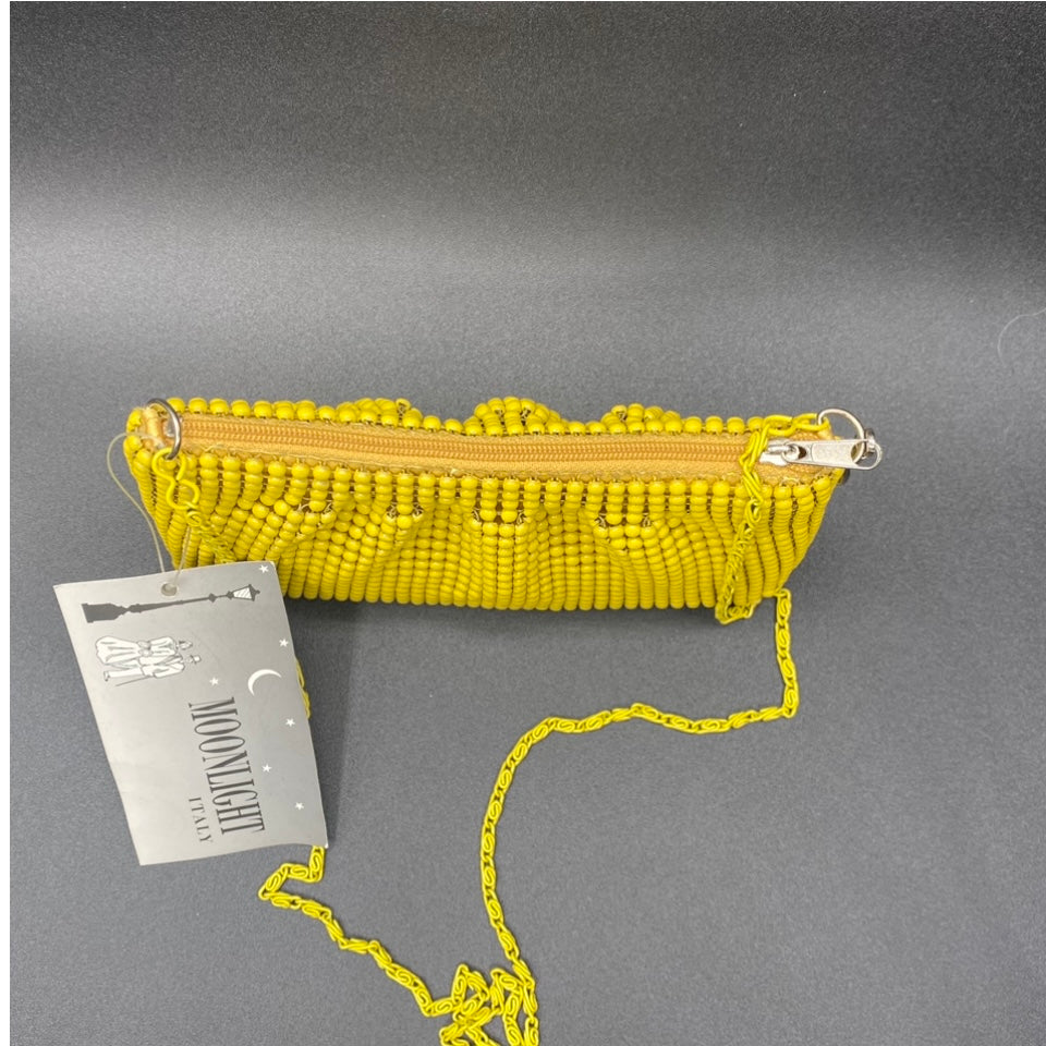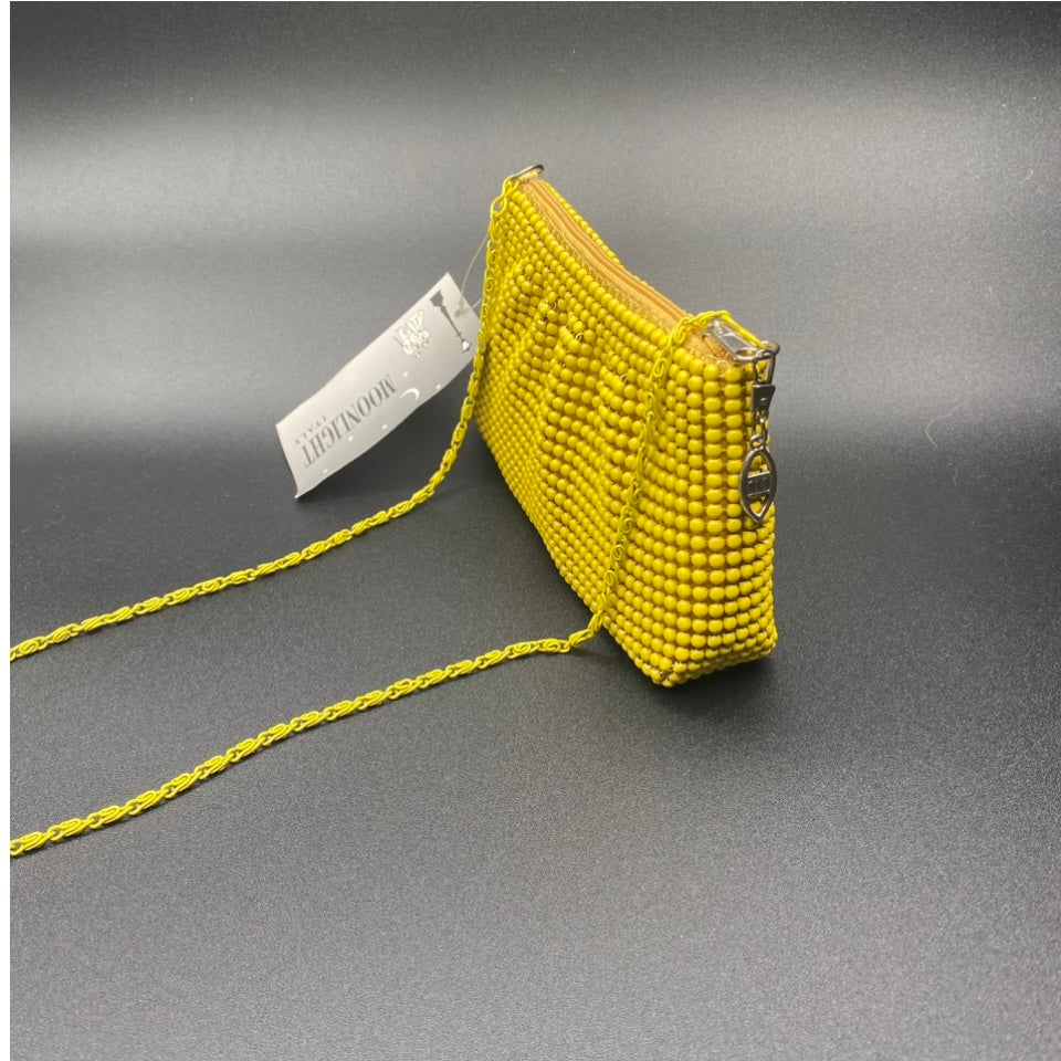 Borsina morbida chiusa con zip marca Moonlight color giallo o nero con perline da portare a tracolla
