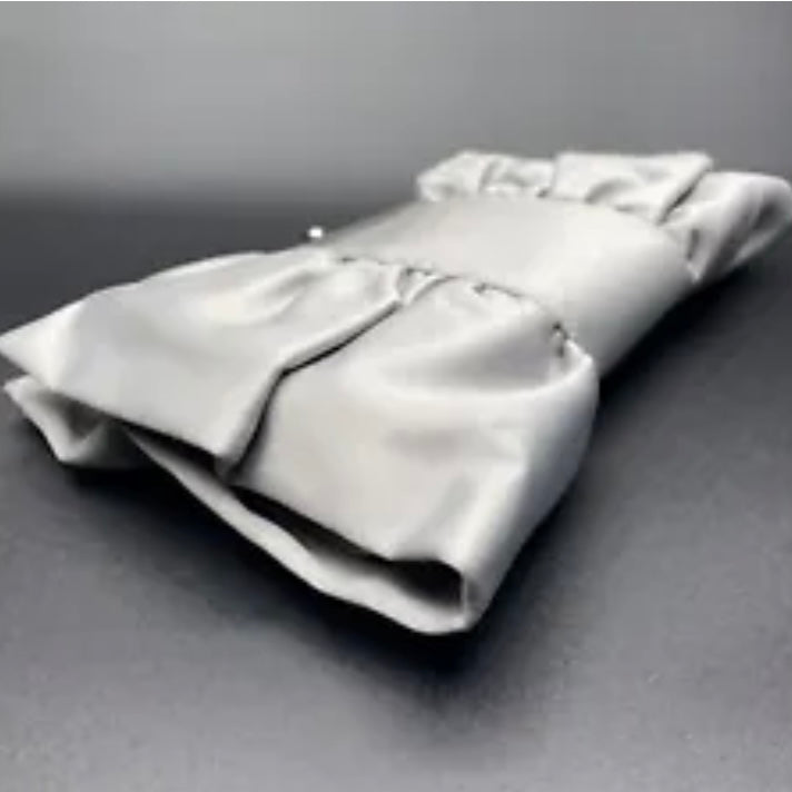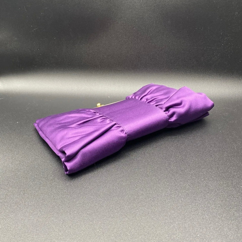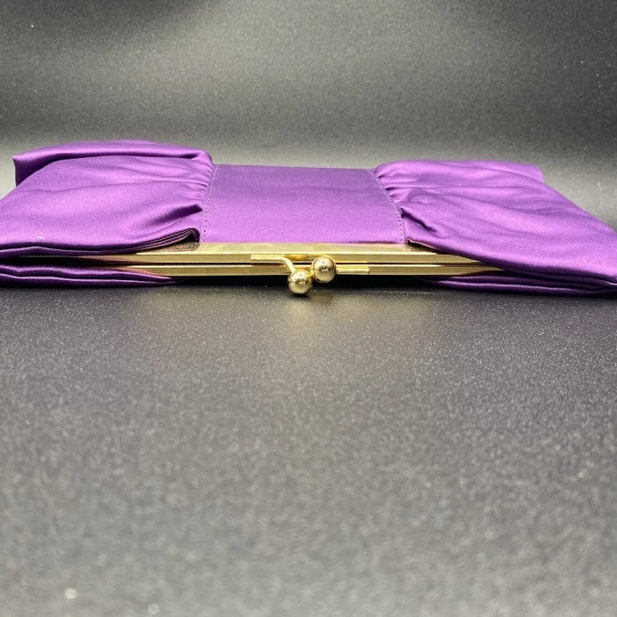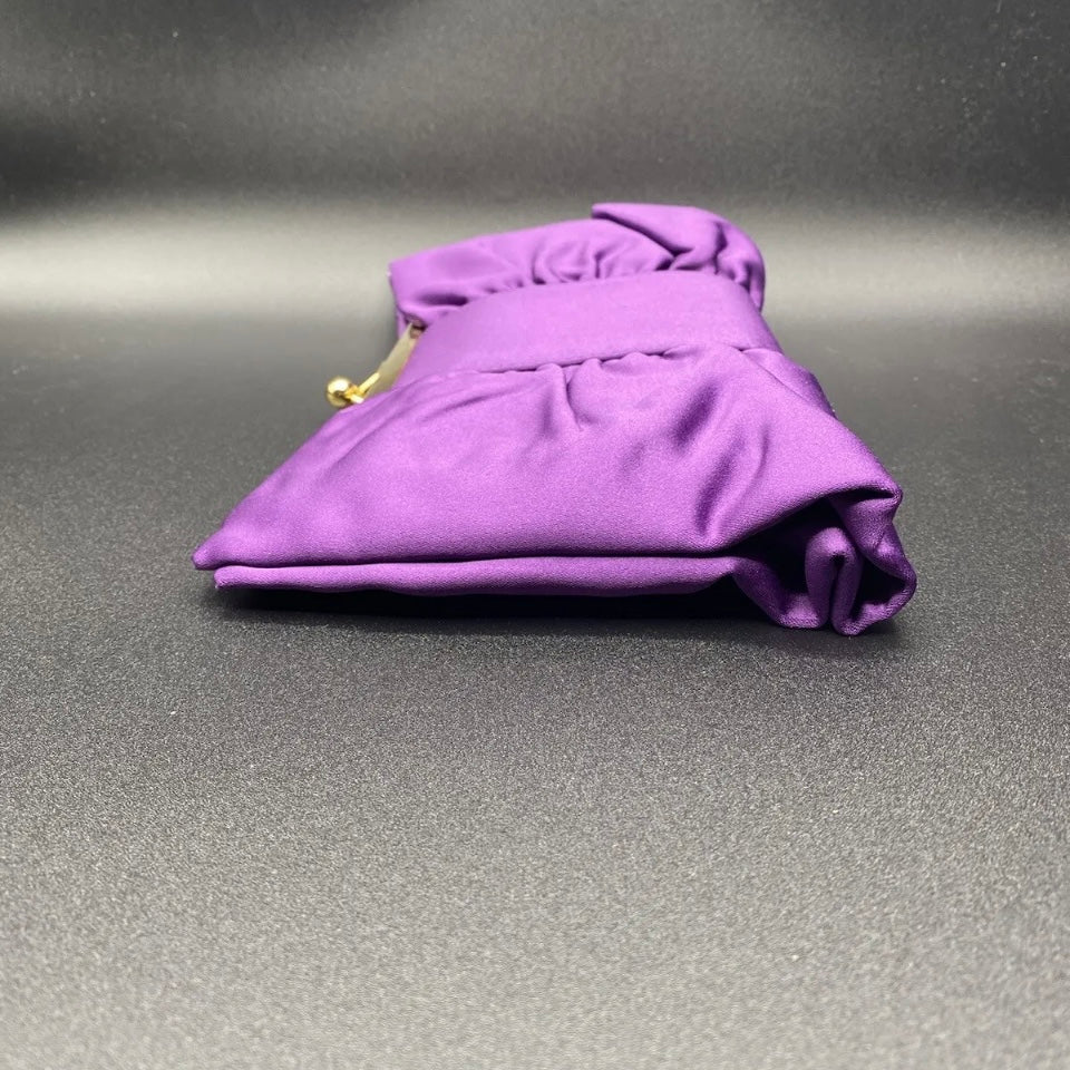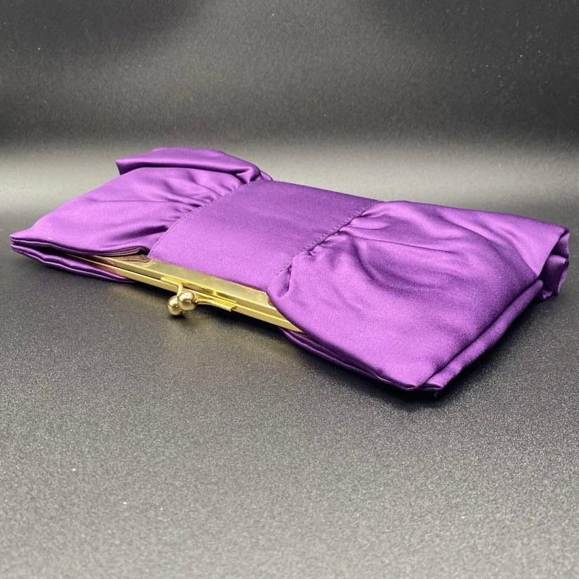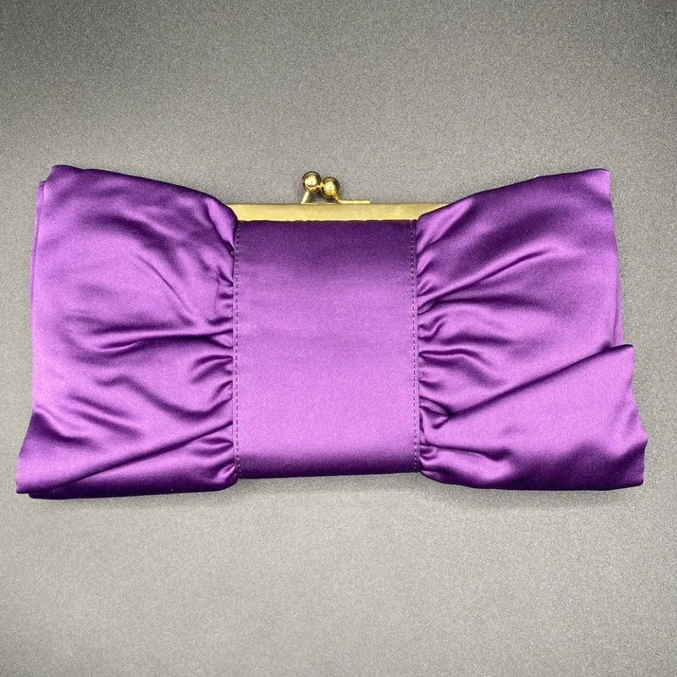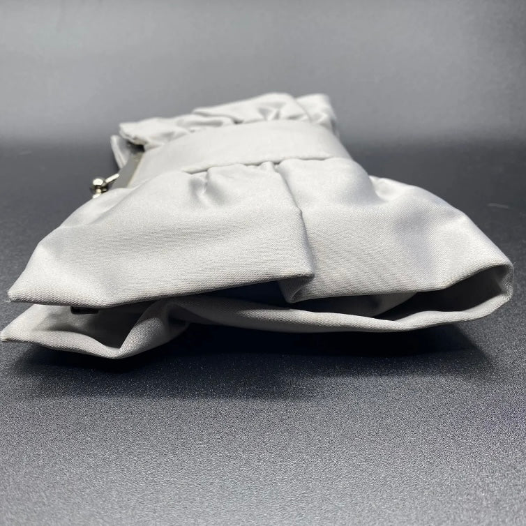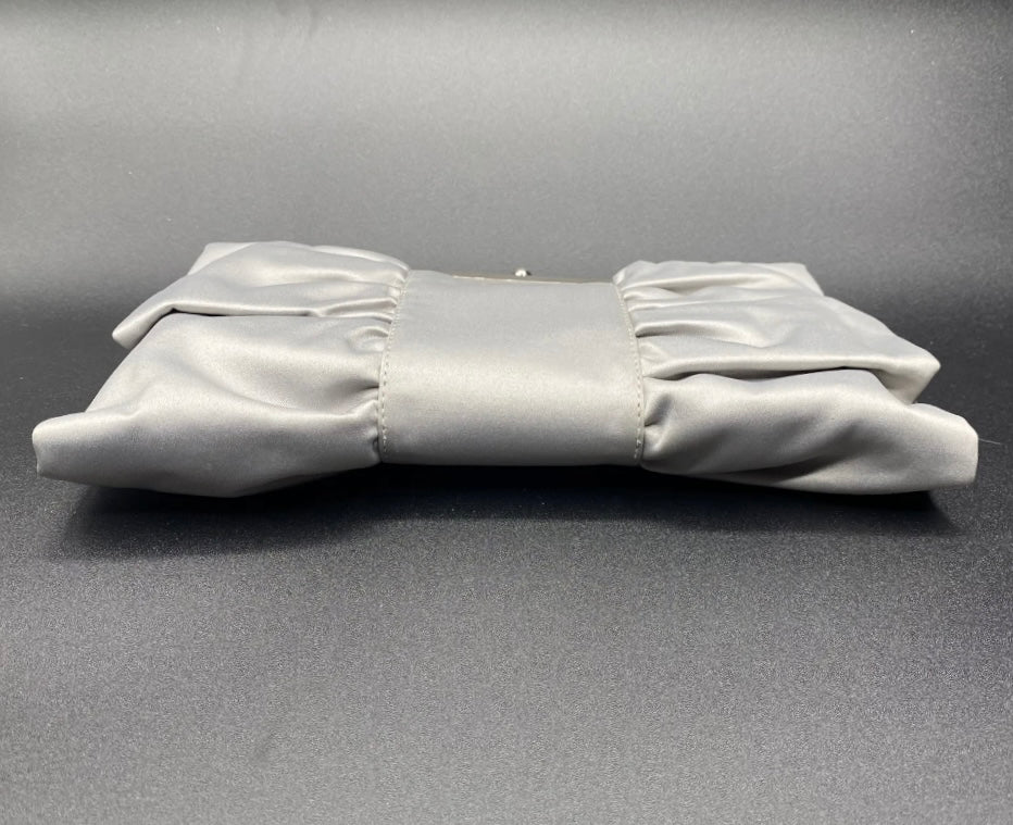 Bellissima ed elegante Pochette chiusa a scatto con marca Moonlight color grigio o viola con fantasia fiocco, da indossare a tracolla o a mano