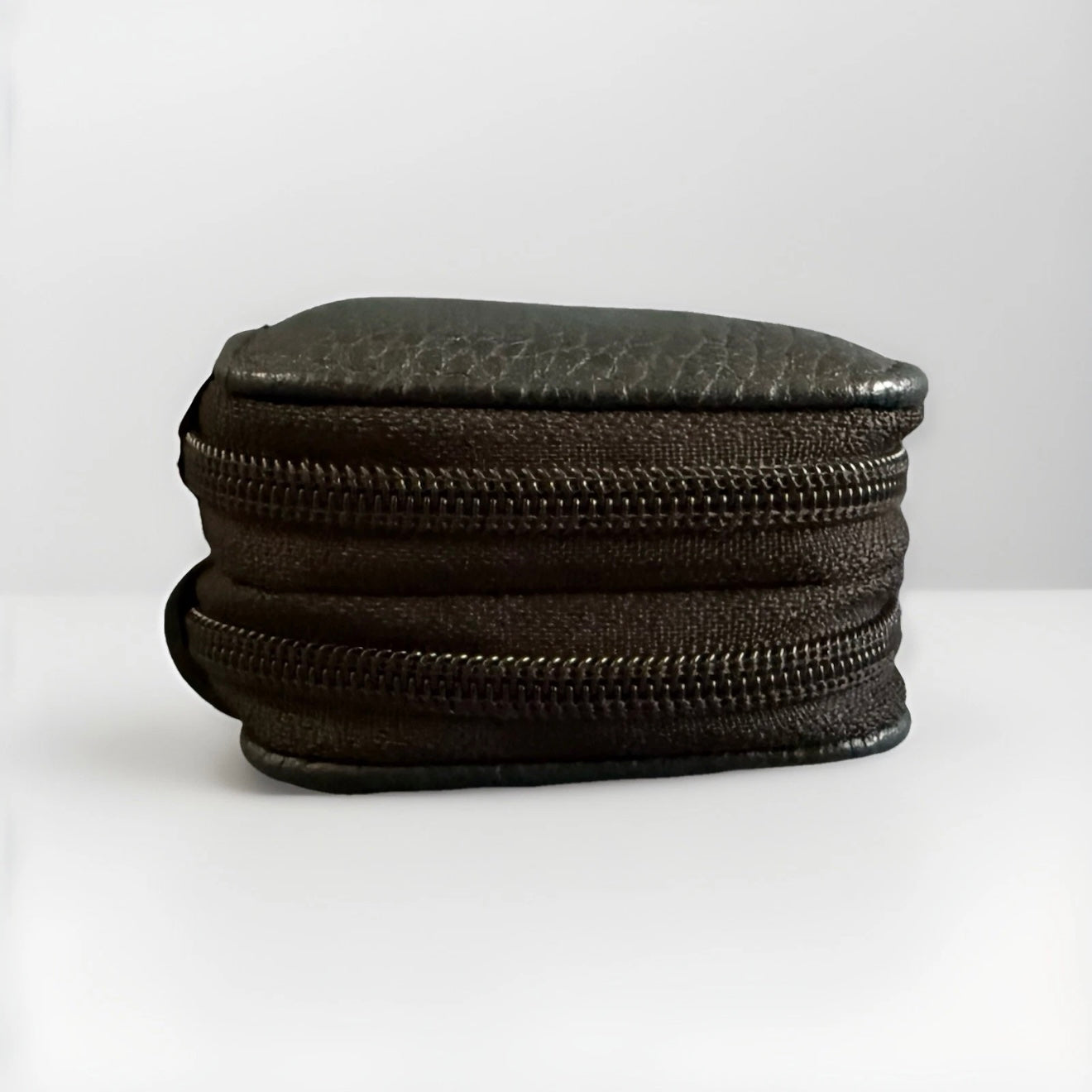 PORTACHIAVI DOPPIO ARTIGIANALE VERA PELLE NERO