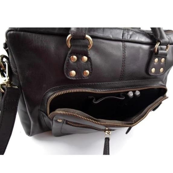 Borsa in pelle color testa di moro da donna con manici e tracolla vera pelle borsa da indossare a mano o a spalla