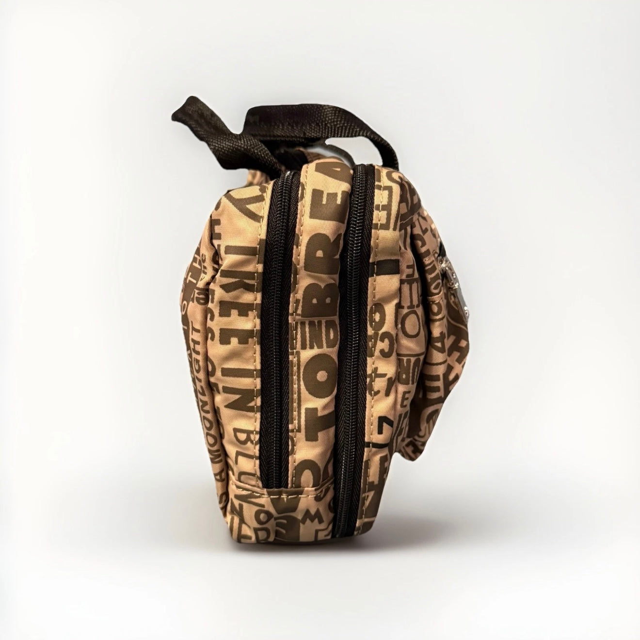Beauty case da viaggio Nannini con stampa logo marrone/beige
