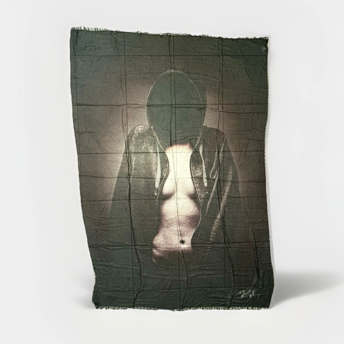 Maxisciarpa STYLEJUNKY in tessuto leggero con stampa artistica di una donna con cappuccio e torso scoperto. Un accessorio unico per aggiungere un tocco di stile.